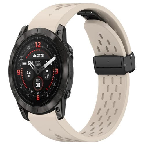 Correa de Reloj para Garmin Epix Pro de Silicona con Hebilla Plegable Magnética y Orificios 51mm (Luz de Estrella)