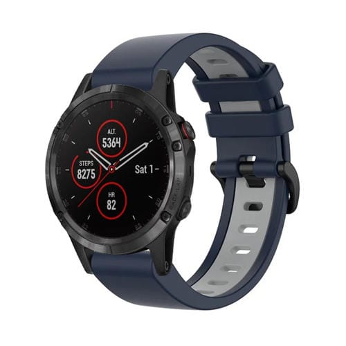 Banda de Silicona 22mm para Garmin Fenix 5 Más Dos Colores (Azul Oscuro+Gris)