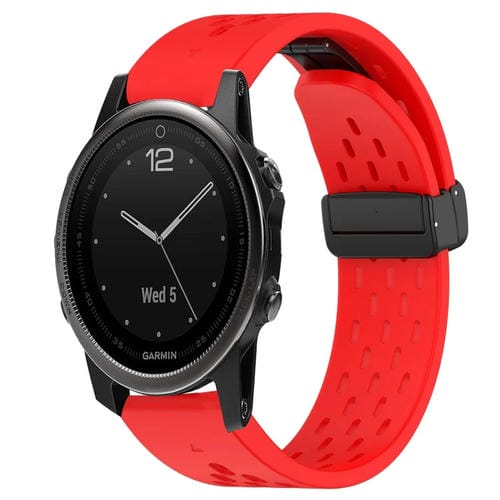 Correa de Silicona para Garmin Fenix 5S con Orificio y Hebilla Plegable de 20mm (Rojo)