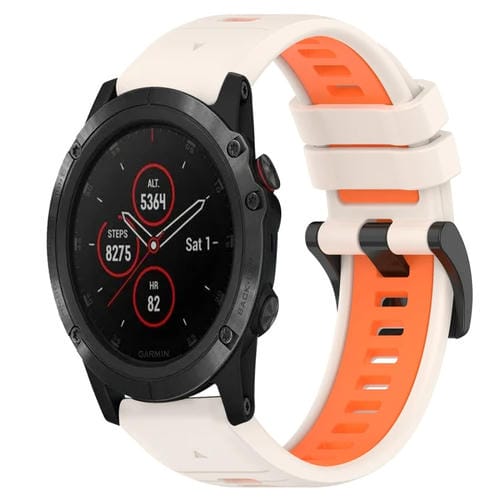 Correa para Garmin Fenix 5X Plus 26mm Silicona Bicolor Sports (Starlight + Orange)