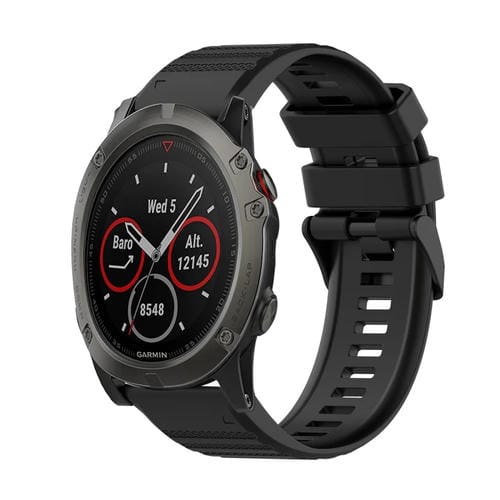 Correa de Reloj silicona para Garmin Fenix 5X Sapphire 26mm con textura horizontal y herramienta de extracción (Negro)