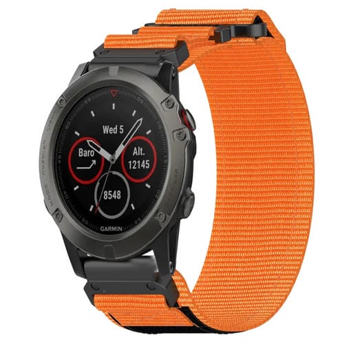 Correa de Reloj para Garmin Fenix 5X Sapphire Nailon 26mm con Cierre Gancho (Naranja)