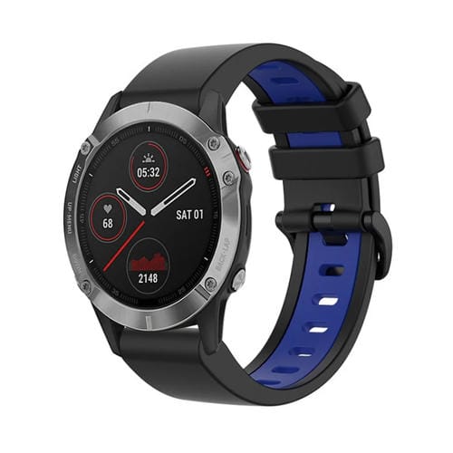 Correa Silicone Sports Band para Garmin Fenix 6 22mm Dos Colores (Negro+Azul)