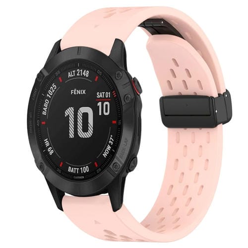 Correa de Silicona para Garmin Fenix 6 Gps con Orificio para Hebilla Plegable 22mm (Rosa)