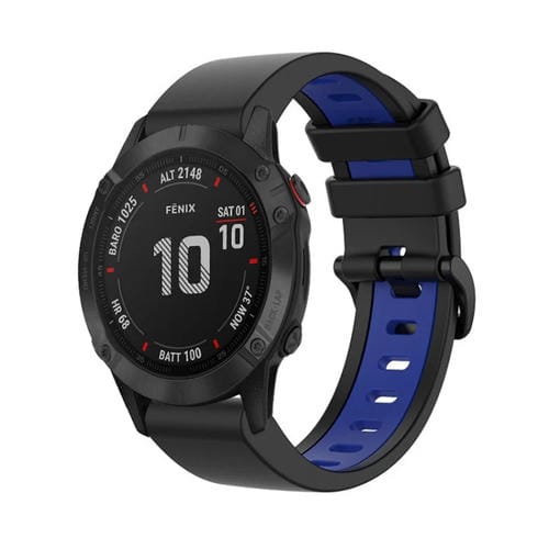 Banda de Silicone Sports para Garmin Fenix 6 Pro 22mm de Dos Colores (Negro+Azul)
