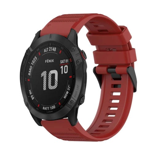 Correa de Reloj para Garmin Fenix 6 Pro GPS 22mm Silicona con Textura Horizontal y Herramienta (Rojo)