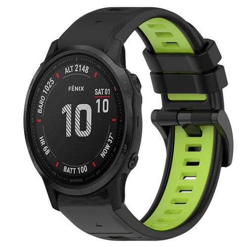 Correa Garmin Fenix 6S 20mm Silicona Deportiva Bicolor (Negro + Verde Lima)