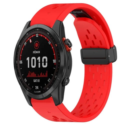 Correa de Silicona para Garmin Fenix 7 Solar 22mm con Orificio y Hebilla Plegable (Rojo)