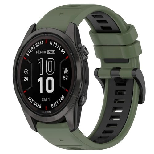 Correa de Silicona 20mm para Garmin Fenix 7S Sports Dos Colores (Verde Oliva + Negro)