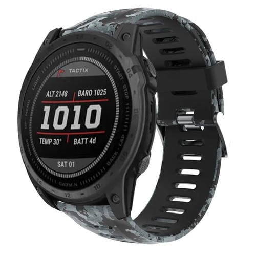 Correa de Silicona para Garmin Fenix 7X Solar 26mm con Estampado de Camuflaje (Negro + Camuflaje Digital)