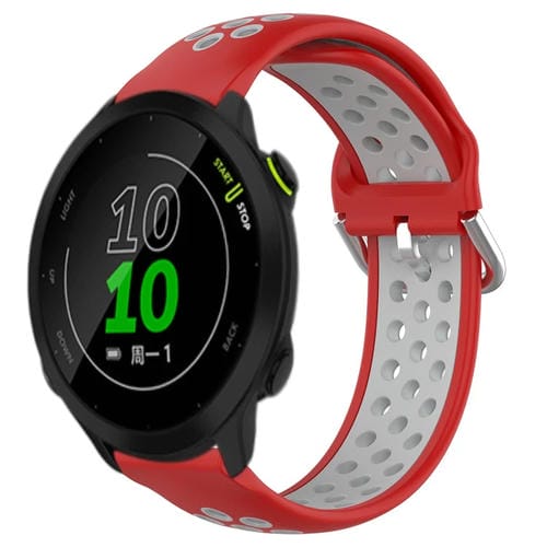 Correa de Reloj para Garmin Forerunner 158 20mm Silicona Deportiva Transpirable Perforada (Rojo + Gris)