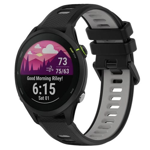 Correa de Silicona 22mm para Garmin Forerunner 255 Music Sports (Negro + Gris)