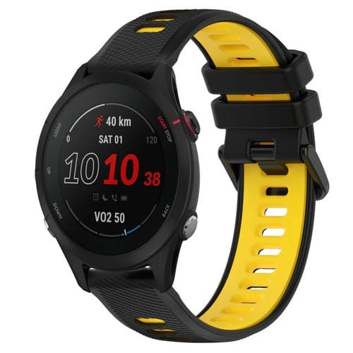 Correa deportiva silicona para Garmin Forerunner 255S Music 18mm (Negro + Amarillo)