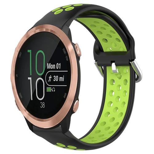 Correa de Reloj Silicona Deportiva para Garmin Forerunner 645 20mm Transpirable (Negro + Lima)