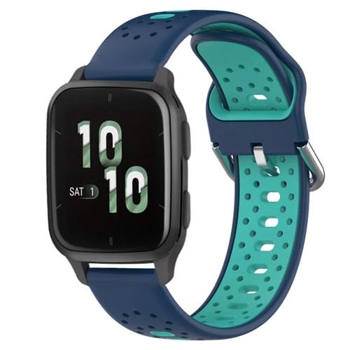 Banda de Reloj de Silicona para Garmin Forerunner Sq2 20mm Transpirable Dos Colores (Azul + Verde Azulado)