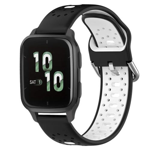 Banda de Reloj de Silicona para Garmin Forerunner Sq2 20mm Transpirable Dos Colores (Negro + Blanco)