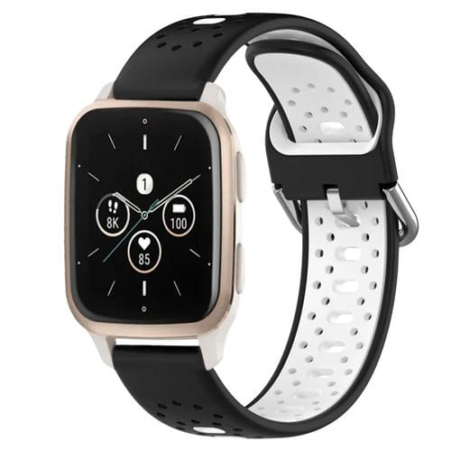 Banda de Reloj de Silicona para Garmin Forerunner Sq2 Music 20mm Transpirable (Negro + Blanco)