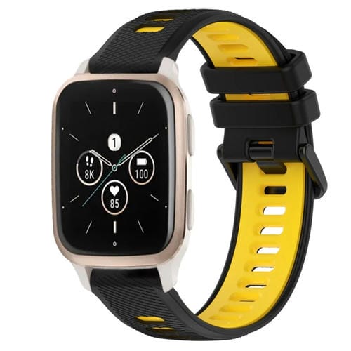 Correa de Silicona 20mm para Garmin Forerunner Sq2 Music Dos Colores (Negro + Amarillo)