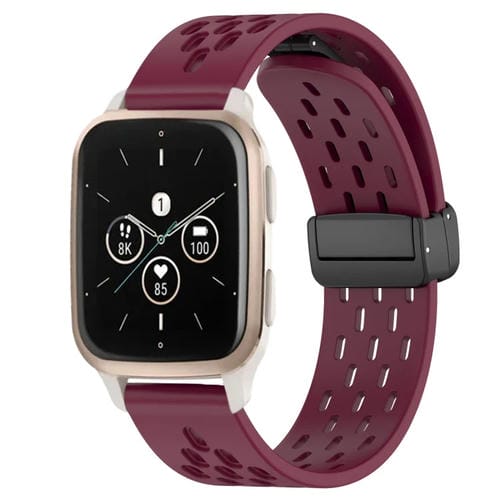 Correa de Silicona para Garmin Forerunner Sq2 Music con Cierre Magnético Plegable de 20mm (Rojo Vino)