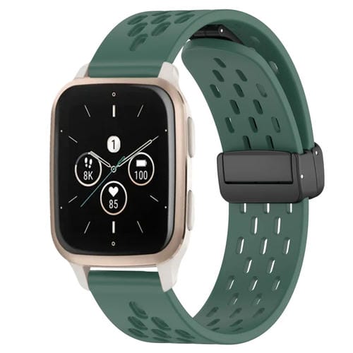 Correa de Silicona para Garmin Forerunner Sq2 Music con Cierre Magnético Plegable 20mm (Verde Oscuro)