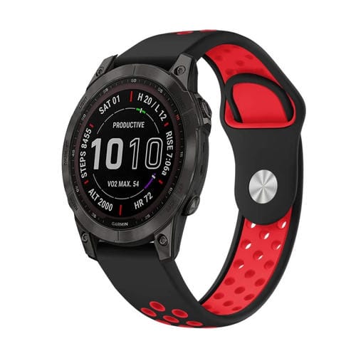 Correa de Reloj para Garmin Instinct 2 Solar Sports de Silicona Transpirable (Negro + Rojo)