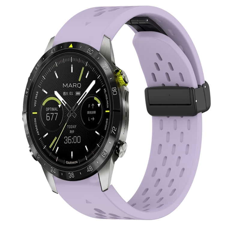 Correa de Reloj de Silicona para Garmin Marq Athlete con Orificio y Hebilla Plegable 22mm (Púrpura)