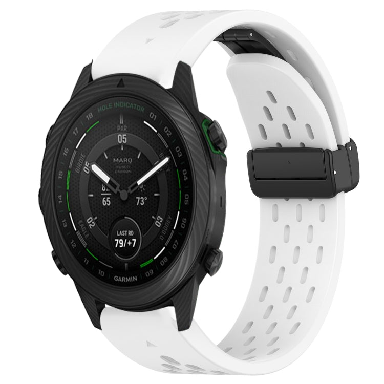 Correa de Reloj de Silicona para Garmin Marq Golfer con Orificio y Hebilla Plegable 22mm (Blanco)