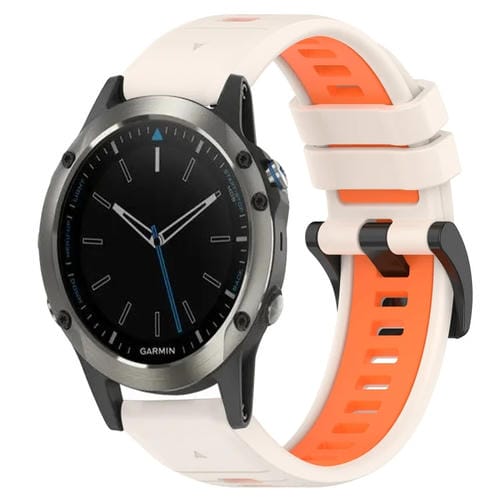 Correa silicona deportiva Garmin Quatix 5 Sapphire 22mm bicolor (Starlight + Orange)