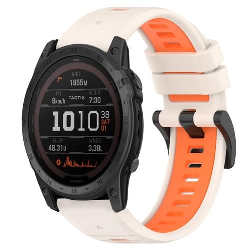 Correa silicona deportiva Garmin Tactix 7 26mm dos colores (Starlight + Orange)