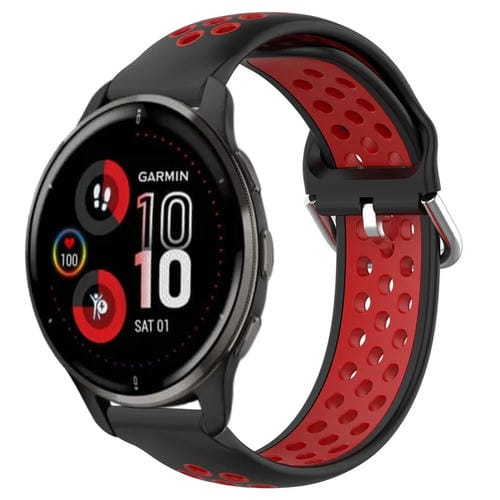 Correa de Reloj para Garmin Venu 2 Plus 20mm Silicona Deportiva Transpirable Perforada (Negro + Rojo)