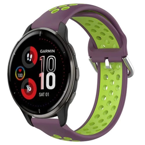 Correa de Reloj para Garmin Venu 2 Plus 20mm Silicona Deportiva Perforada (Púrpura + Lima)