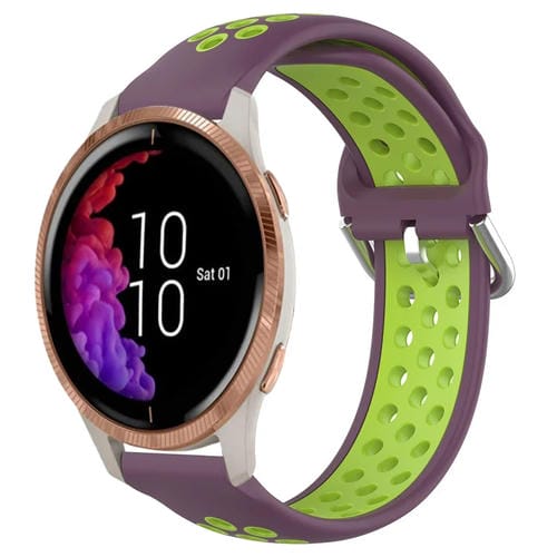 Correa de Reloj para Garmin Venu Silicona Deportiva Transpirable Perforada 20mm (Púrpura + Lima)