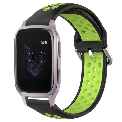 Correa de Reloj Silicona Deportiva para Garmin Venu Sq 20mm Transpirable Perforada (Negro + Lima)