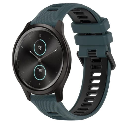 Correa para Garmin Vivomove Style 20mm Silicona Sports Dos Colores (Verde Oliva + Negro)