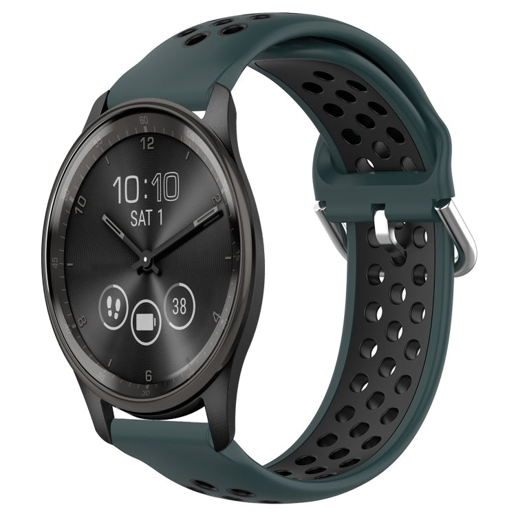 Correa de Reloj de Silicona Deportiva para Garmin Vivomove Trend 20mm Transpirable Perforada (Verde Oliva + Negro)