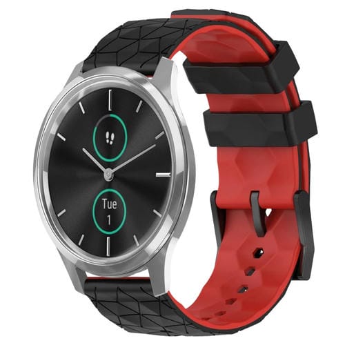 Banda de Reloj Garminmove Luxe 20mm Silicona Patrón de Fútbol (Negro + Rojo)
