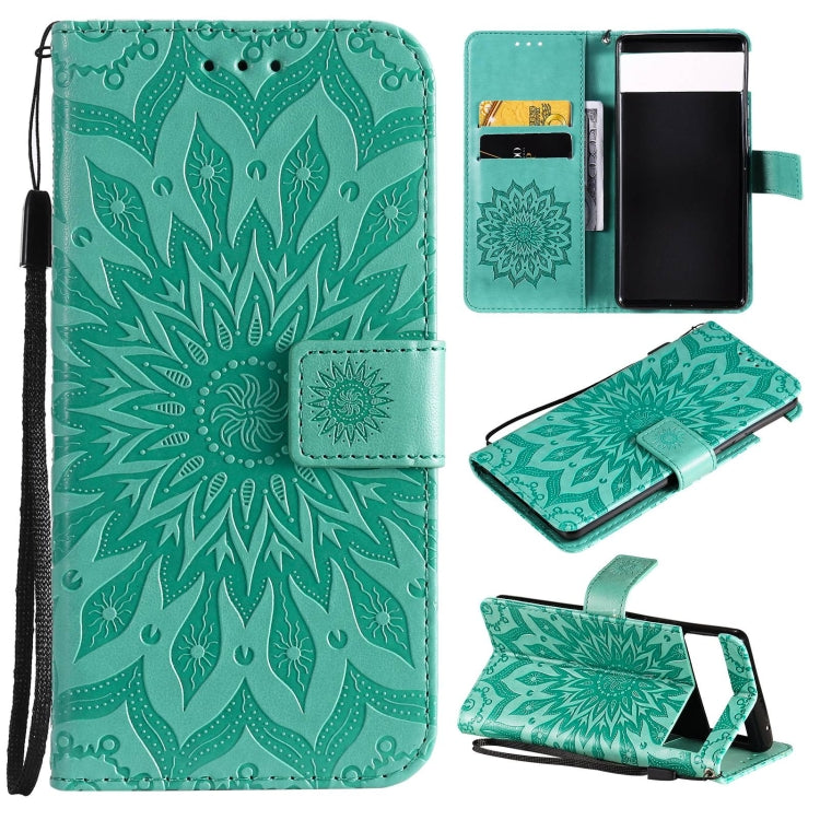 Para Google Pixel 6 Pro Sun Sun Pattern Horizontal Flip Funda de cuero con ranura para tarjeta y soporte y cartera y cordón (verde)