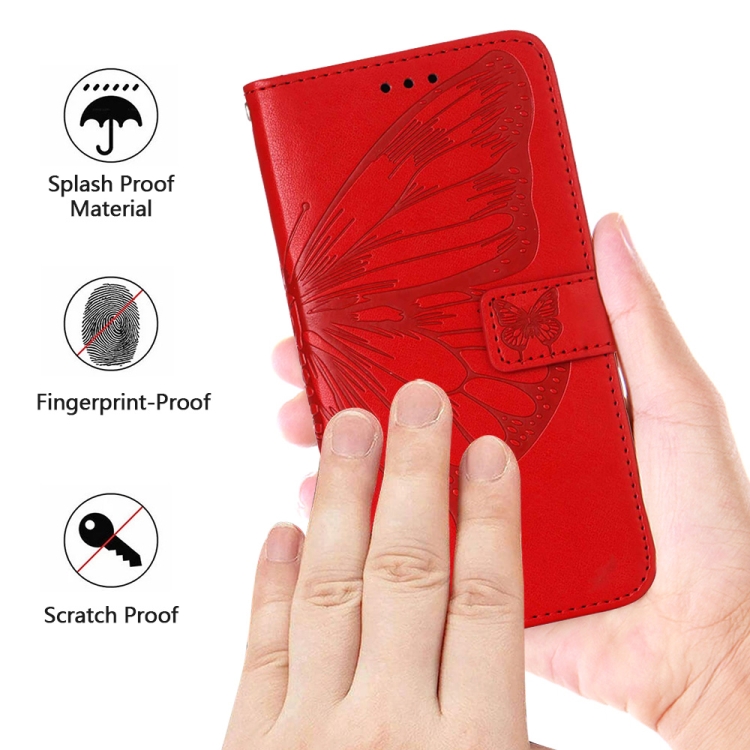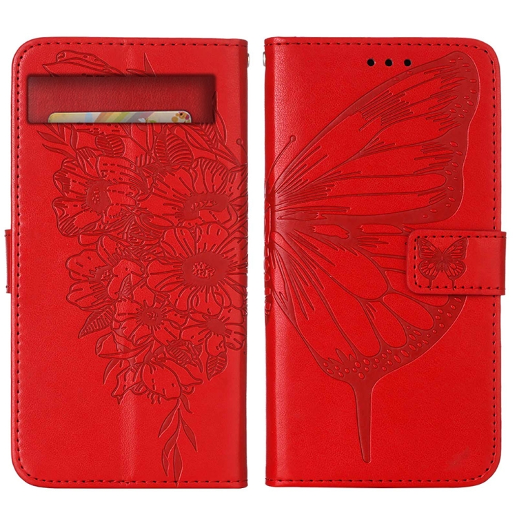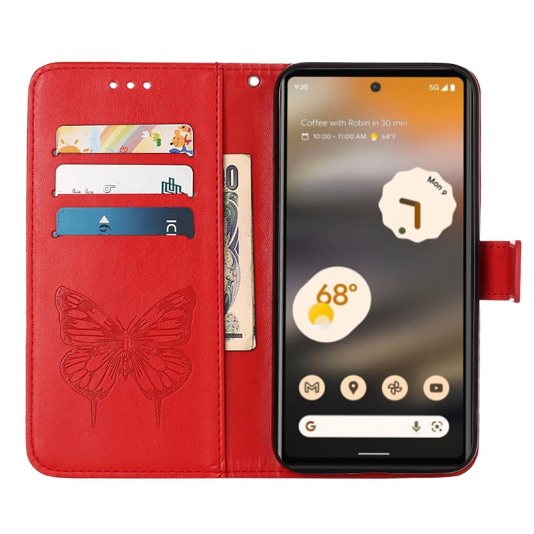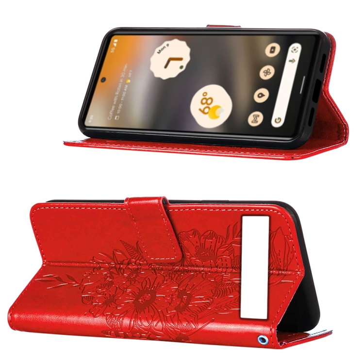 Funda de Cuero para Google Pixel 7A con Tapa de Mariposa en Relieve (Rojo)