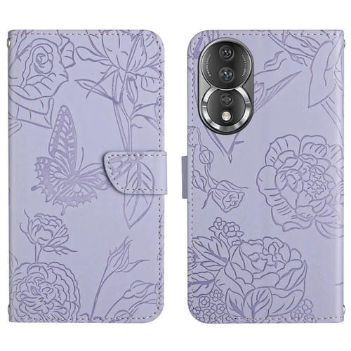Funda de Cuero para Honor 80 Ht03 Skin Feel Butterfly con Tapa en Relieve (Púrpura)
