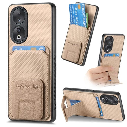 Funda para Honor 90 con Soporte Plegable y Bolsa para Tarjetas de Fibra de Carbono (Caqui)