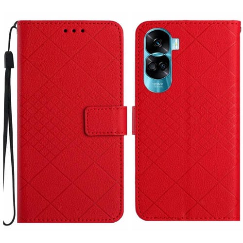 Funda para Honor 90 Lite de Cuero con Textura de Rejilla Rómbica (Rojo)