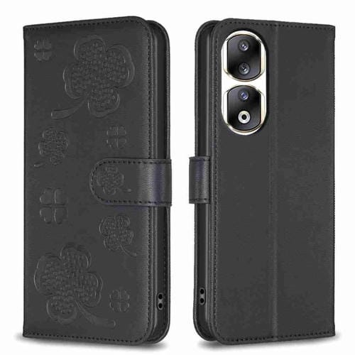 Funda de Cuero para Honor 90 Pro con Relieve de Cuatro Hojas (Negro)