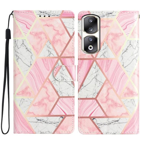 Funda de Cuero para Honor 90 Pro con Dibujo Coloreado Mármol Rosa