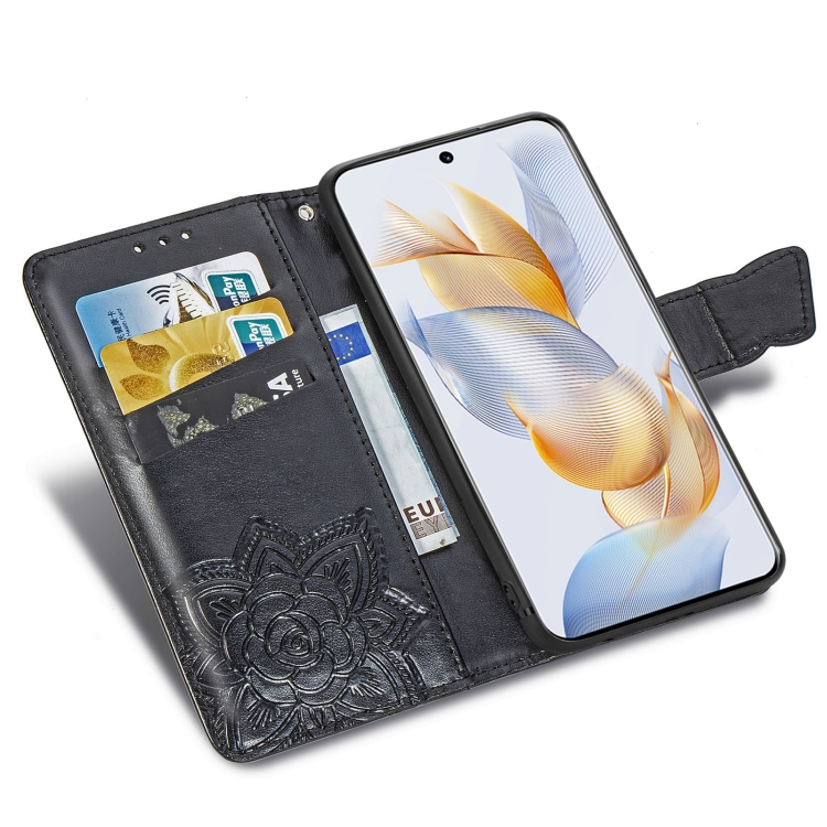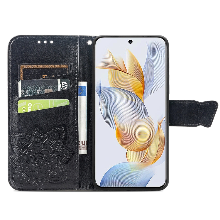 Funda para Honor Play 40C y X5 Plus de Cuero con Relieve Flor de Amor y Mariposa (Negro)