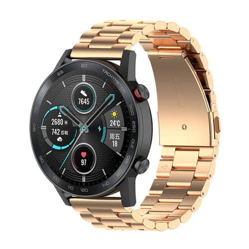 Correa de Reloj para Honor Watch GS 3I 22mm Metal Acero Inoxidable Tres Cuentas (Oro Rosa)