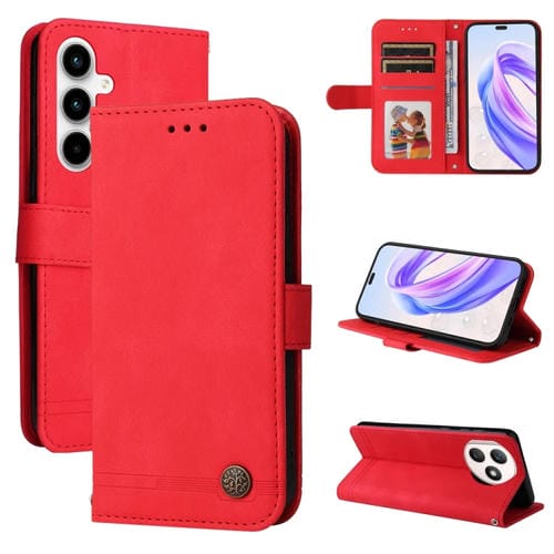 Funda de Cuero para Honor X50I con Botón de Metal + Skin Feel Life Tree (Rojo)