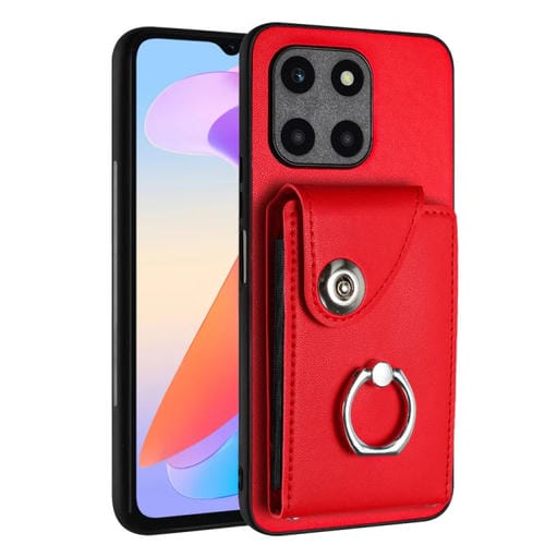 Funda para Honor X6A de PU con Soporte para Anillo y Bolsa para Tarjeta (Rojo)