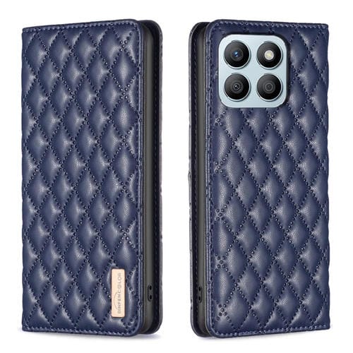 Funda para Honor X8B con Tapa de Cuero Magnético y Diseño Diamond Lattice (Azul)