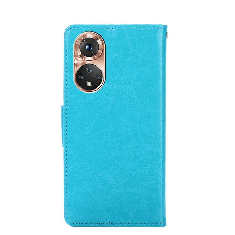 Para honrar 50 funda de cuero horizontal de la textura de la textura con soporte y ranuras para tarjetas y billetera (azul claro)