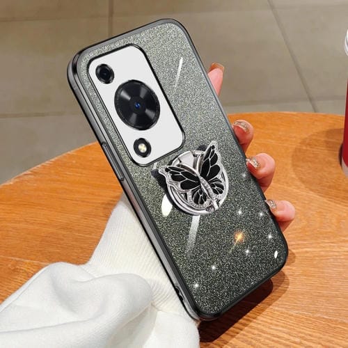 Funda TPU para Huawei Enjoy 70 con Soporte de Mariposa y Brillo Degradado (Negro)